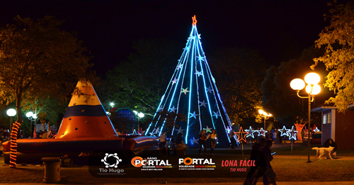 A abertura do Natal Iluminado 2022 contou com a intensa participação do público na noite da sexta-feira 25 de novembro. Após dois anos sem a realização do evento, a festividade voltou a ser promovida em Tio Hugo, mantendo a tradição de sucesso trilhada desde a primeira edição no ano de 2017. Durante os pronunciamentos estiveram presentes secretários municipais, o Presidente da Câmara de Vereadores de Tio Hugo, Valdeci Kuhn, além do prefeito Gilso Paz e do Vice Geder Follmer. Em seus discurso Valdeci Kuhn destacou o quão importante este evento é para a comunidade, uma vez que promove a integração entre amigos e famílias, além de despertar o espírito natalino nas crianças, que brincam, se divertem e interagem com o Papai Noel. O vice prefeito Geder Follmer citou as importantes ações desenvolvidas pelo Poder Executivo Municipal, entre elas o Natal Iluminado, os quais promovem o lazer e a interação social. Geder aproveitou a oportunidade para convidar todos os presentes para a segunda noite do Natal Iluminado, que ocorre no dia 17 de dezembro na Praça Oscar Groth. O prefeito Gilso Paz agradeceu à todos os presentes no evento, enfatizando o quanto este evento é importante para o município e a sua população. O líder do Executivo Municipal mencionou em seu discurso os investimentos feitos pela Administração durante o ano de 2022. “São mais de R$ 5 milhões investidos em melhorias dentro do nosso município em diversas áreas. Recentemente executamos mais uma etapa do Programa Municipal de Reformas Habitacionais, vamos ampliar escolas e na área da saúde, apresento a todos a nova van para transporte de passageiros. São recursos extraorçamentários e próprios do município, os quais são utilizados para melhorar a estrutura e a vida daqueles que residem aqui em Tio Hugo”, finalizou. Na sequencia as crianças e jovens estudantes da rede municipal de ensino, se apresentaram através de apresentações musicais, de capoeira e dança. Além disso, as invernadas do Piquete Flores Goes e CTG Caminho dos Pampas também realizaram as suas apresentações. O Papai Noel chegou para receber a chave da cidade, e com muita alegria atendeu todos para registros fotográficos. A noite festiva foi finalizada com shows das bandas Luz do Luar e G10. A próxima noite do Natal Iluminado de Tio Hugo acontecerá no dia 17 de dezembro, na Praça Ocar Groth. TEXTO : PREFEITURA MUNICIPAL DE TIO HUGO.