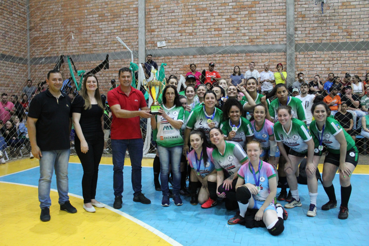 O Campeonato de Futsal e Voleibol de Tio Hugo 2022 foi finalizado no sábado (12), em mais uma noite de grande público presente no Ginásio Municipal Gilmar Mühl e excelentes jogos disputados nas 5 categorias do certame. Confira os resultados: ???? Via Vôlei 2 x 1 Vôlei Mania (Campeão Via Vôlei) ⚽️ Arsenal 6 x 1 Witches Ball (Campeão Arsenal) – Futsal Feminino ⚽️ Quem Chuta Busca 3 x 2 Arranca Toco – (Campeão Quem Chuta Busca) – Master ⚽️ Linha Machado FC 4 x 3 Amigos da Bola (Campeão Linha Machado FC) – Veteranos ⚽️ Linha Machado FC 8 x 5 Divino (Campeão Linha Machado FC) – Livre A Administração Municipal de Tio Hugo juntamente com a organização do campeonato, parabeniza as equipes campeãs da competição. E faz também, um agradecimento à todos os atletas envolvidos no certame, assim como, a comunidade local e regional que acompanhou os jogos.